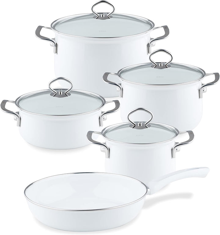 Riess, 0558-033, Emaille-Set 5-teilig, NOUVELLE - ARCTICWEISS, bestehend aus: Fleischtopf mit Glasde