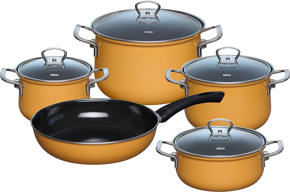 - Geschirrset aus fünf Teilen mit 4 Deckeln