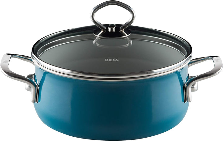 • Riess 0709-010 Kasserolle mit Glasdeckel 20cm, 2L AQUAMARIN, LBH 29x21,3x8,8cm, Gew. 2,229kg