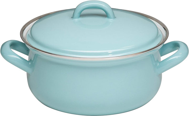 - bauchige Kasserolle mit zwei Emaillegriffen, Emaille Deckel mit Griff, mit halbhoher bauchiger Seitenwand