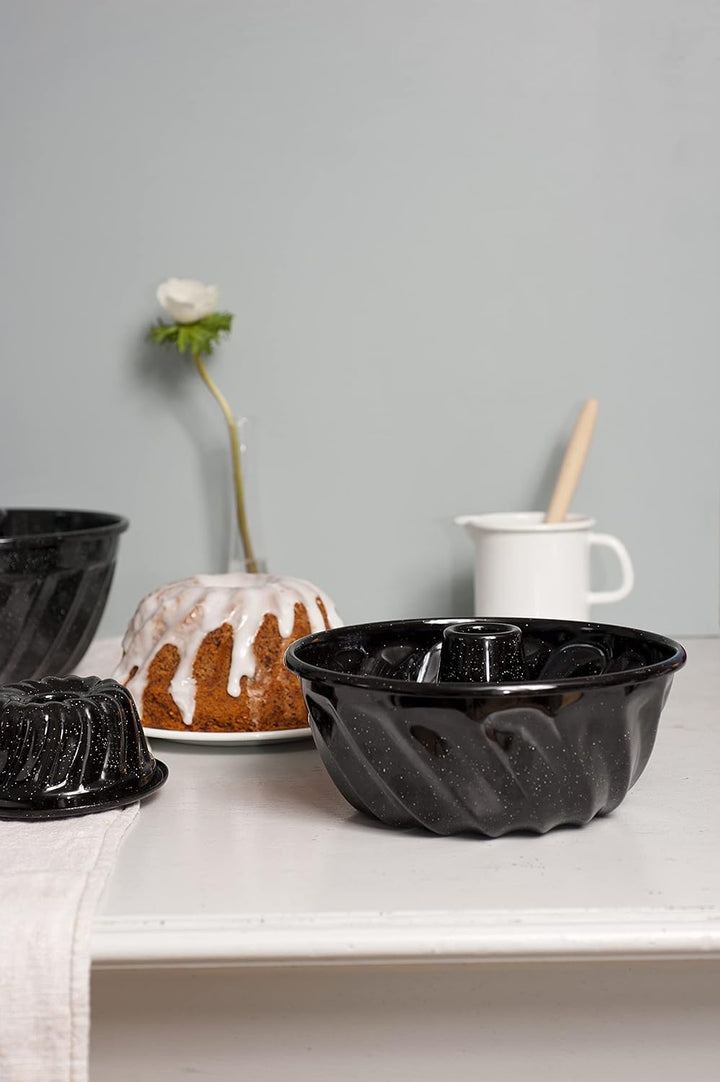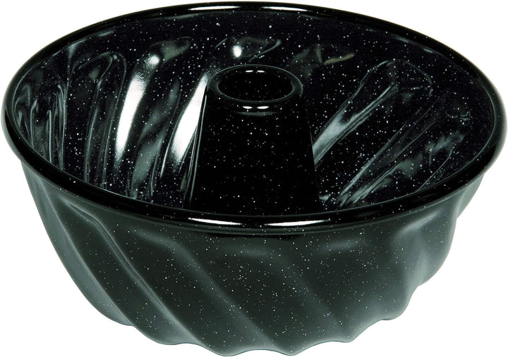 - Backform aus Emaille für Guglhupf (Napfkuchen), Bördelrand, Schwarzemaille