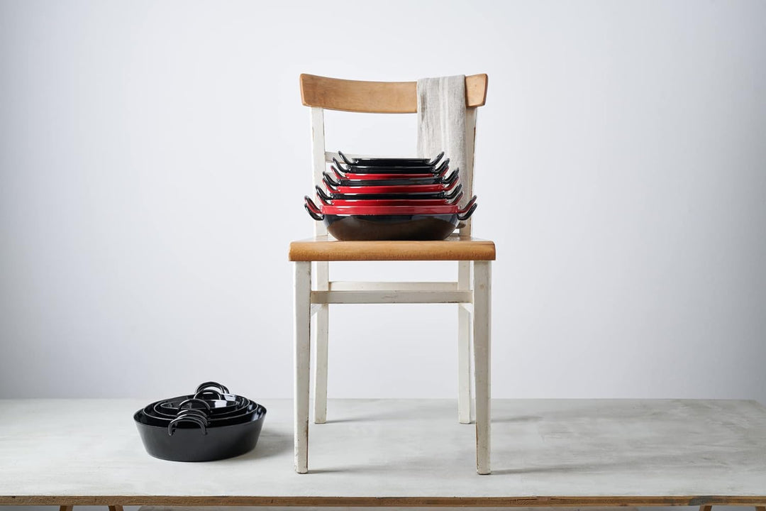 - Servierpfanne mit zwei Griffen, aus schwarzer Emaille