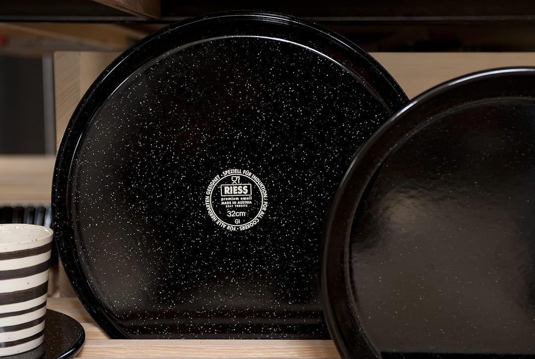 - Schwarzemaille, für energiesparendes Backen, backofengeeignet, fruchtsäurebeständig