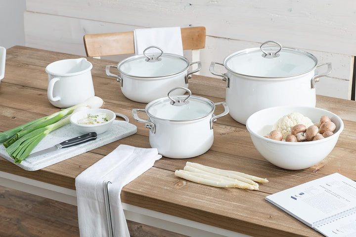 Riess, 0655-033, Kasserolle mit Glasdeckel, NOUVELLE, ARCTICWEISS, Durchmessser 16 cm, Höhe 8 cm, In