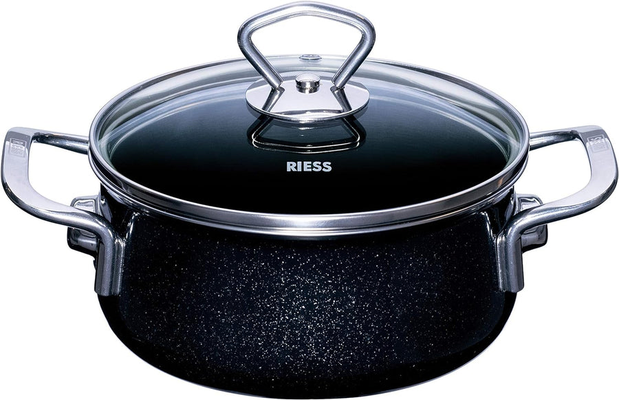 - halbhoher Kochtopf - Kasserolle - mit Design-Edelstahlgriff, Sichtglasdeckel mit Edelstahlgriff, extra-starker Stahl-Wärmespeicherboden, robuster Chromrand
