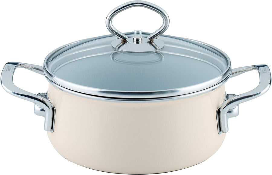 Riess, 0707-011, Kasserolle mit Glasdeckel, NOUVELLE-AVORIO EXTRA STARK, Durchmessser 16 cm, Höhe 14