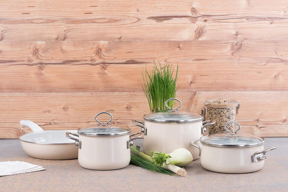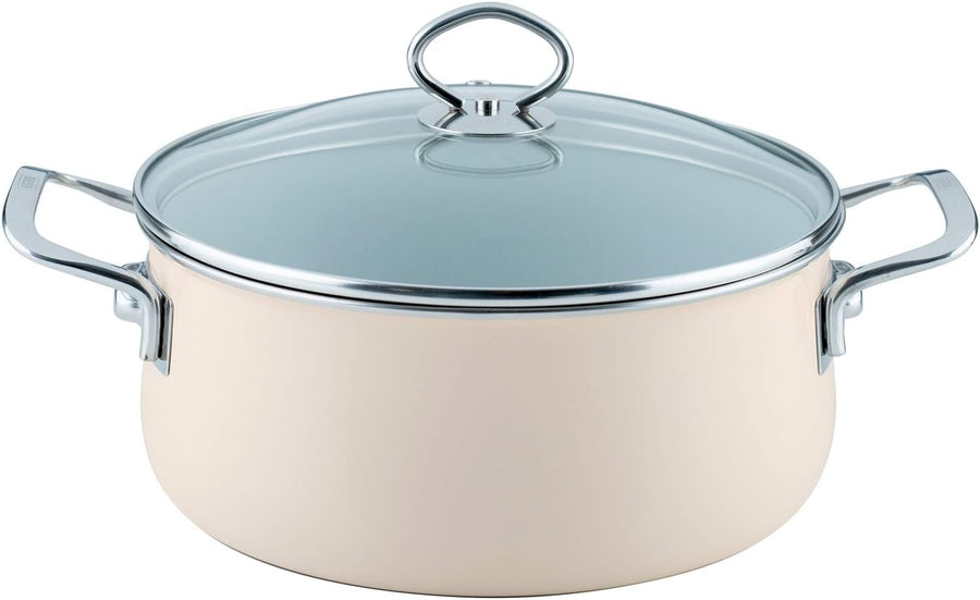 Riess, 0711-011, Kasserolle mit Glasdeckel, NOUVELLE, AVORIO EXTRA STARK, Durchmessser 24 cm, Höhe 1