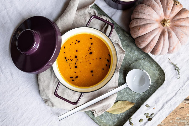 - Durchmesser 20 cm, Inhalt 1,75 Liter, energiesparend durch extra starken Eisenkern, Farbe Dark Aubergine / Violett
