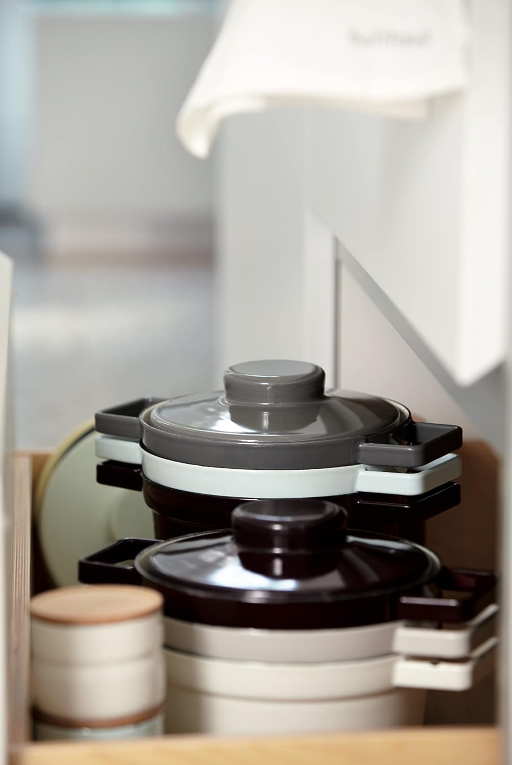 - Topf mit zwei Emaillegriffen, Deckel auch als Topfuntersetzer verwendbar, durch seine konische Form gut stapelbar