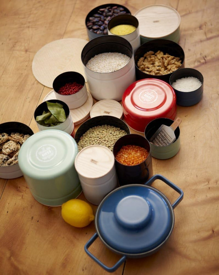 - Topf mit zwei Emaillegriffen, Deckel auch als Topfuntersetzer verwendbar, durch seine konische Form gut stapelbar
