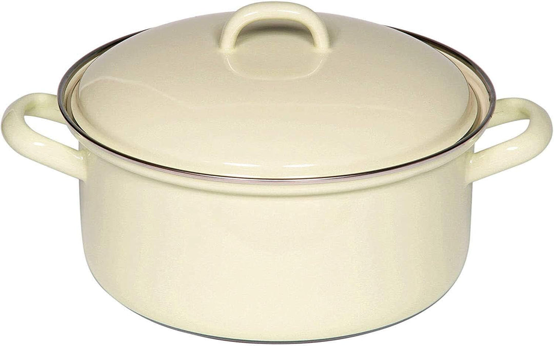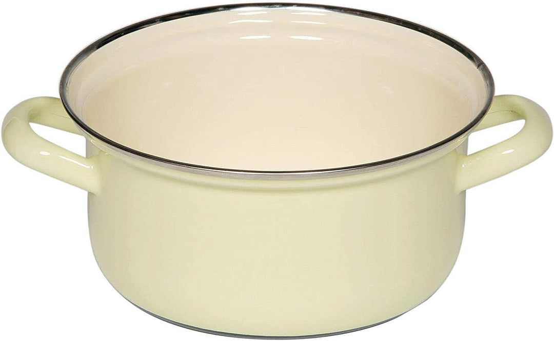 PRODUKTBESCHREIBUNGEN Kochen mit Emaille Emaillegeschirr ist für alle Herdarten (Ausnahme Mikrowelle) zu verwenden und durch den magnetisierbaren Eisenkern für Induktionsherde perfekt geeignet. Damit zu kochen bedeutet mehr Gesundheit und Genuss, denn Emaille ist durch die Oberfläche aus Glas absolut aromaneutral. Die Speisen behalten ihren unverfälschten Geschmack. Gleichzeitig ist die perfekte Wärmeleitung und -speicherung des Essenkerns unübertrefflich. Die Hitzezufuhr sollte daher immer stufenweise erfolgen und kann bald gedrosselt werden. Dies gilt besonders für Induktionskochen. So bleiben nicht nur gesunde Inhaltsstoffe und wertvolle Aromen erhalten, sondern man spart auch Energie. Emailgeschirr ist bei sorgsamer Behandlung extrem langlebig und wird zum Erbstück für Generationen. Der kleine Topf eignet sich besonders gut für 1 bis 2 Peronen Haushalte und Senioren bzw. zum Erwärmen von Saucen, Butter oder Kindernahrung sowie zum Servieren von Dips. Durchmesser: 16 cm Fassungsvolumen: 1 Liter