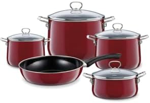 - Pfanne aus Emaille, Kunststoffgriff schwarz, Farbe rot aussen – innen schwarz
