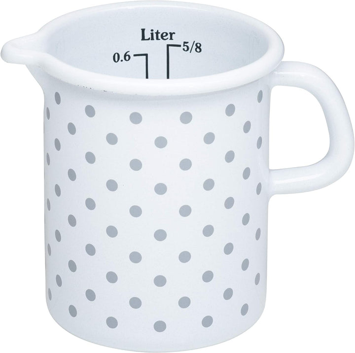 - Messbecher aus Emaille Haltegriff aus Emaille, gut lesbare 2-teilige Skala in Centiliter und 1/8 Liter (bzw. ¼ Liter)