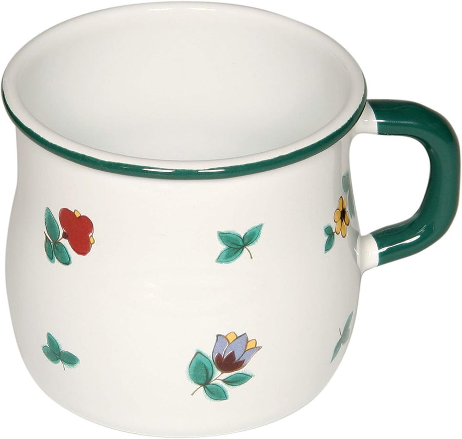 - gebauchter Trinkbecher aus Emaille, Haltegriff aus Emaille, Bördelrand
