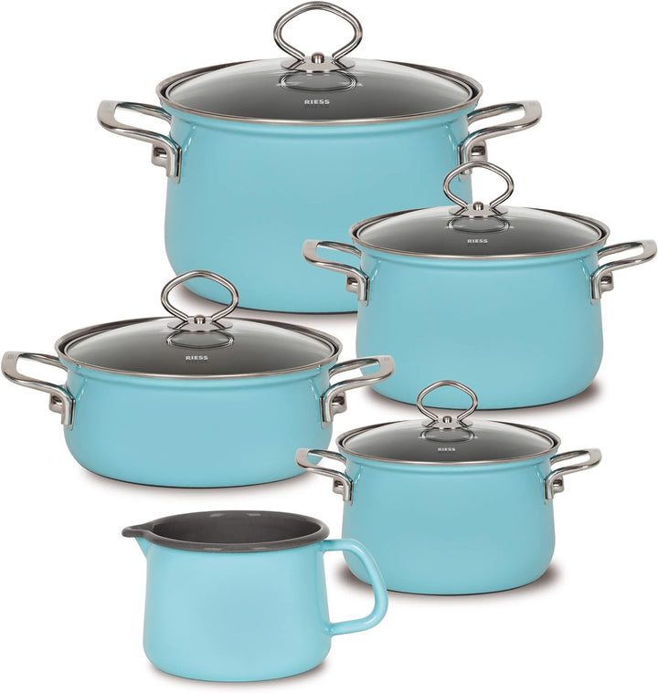 - Riess 0659-037 Fleischtopf mit Glasdeckel 24cm, 6 L KRISTALLBLAU, LBH 33,3x25,8x15,2cm, Gew. 2,496kg