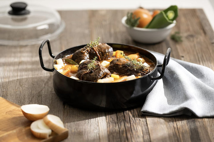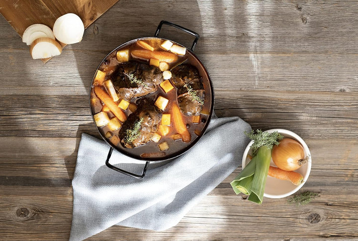 - praktische Servierpfanne mit zwei Griffen, Schwarzemaille