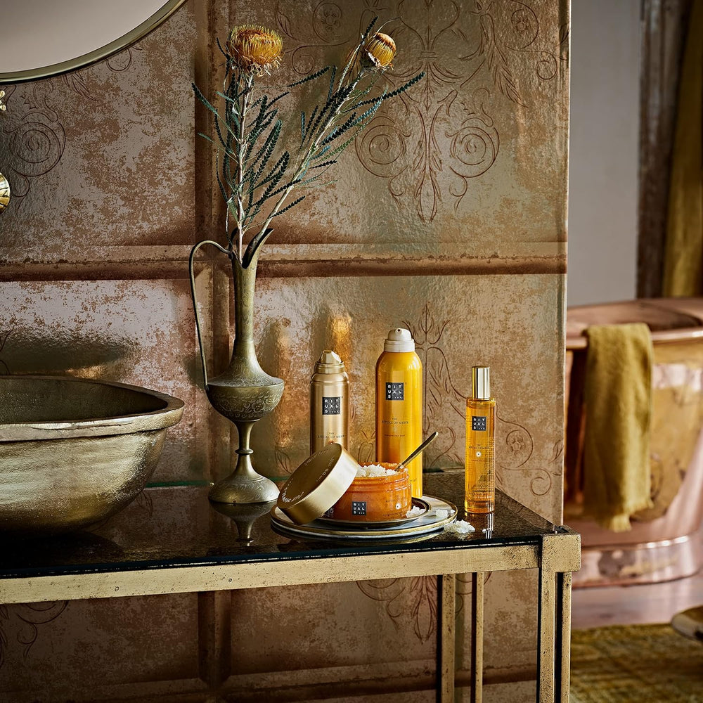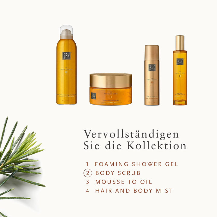 - Vervollständigen Sie das Ritual: Um Ihr Erlebnis von The Ritual of Mehr zu verlängern, verwenden Sie unser Körperpeeling zur Reinigung, gefolgt von unserer Körpercreme für die Feuchtigkeitspflege; schliessen Sie Ihr Ritual dann mit einem Spritzer