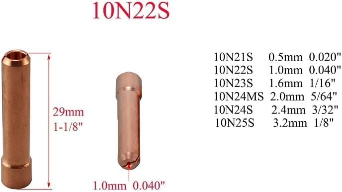 - Each size two for TIG collet 10N22S (0.040" & 1.0mm) , 10N23S (1/16" & 1.6mm) , 10N24S (3/32" & 2.4mm) , 10N25S (1/8" & 3.2mm)