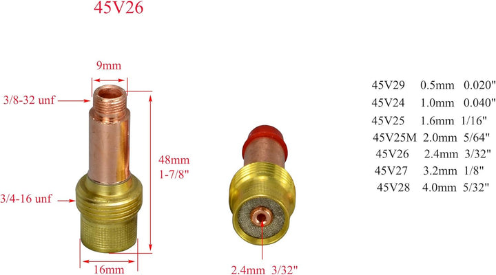 - 3 Stück WIG-Rückkappe und 3 Stück Gaslinsen-Dichtungsbecher-Einsatz-Rückseitenisolator