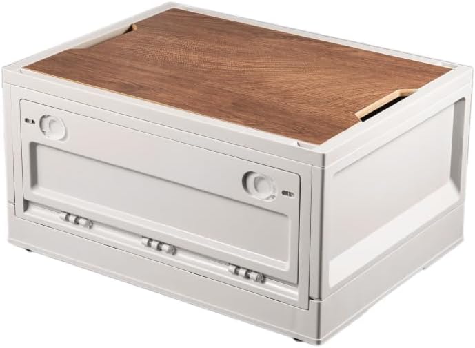 - Design: keine Verformung und Rissbildung, langlebig, mit Rollen, leicht zu bewegen, einfach und arbeitssparend, stabil und kippt nicht. Der Deckel der Box ist ein Holzbrett, das als Schneidebrett, Tablett und Campingtisch verwendet werden kann.