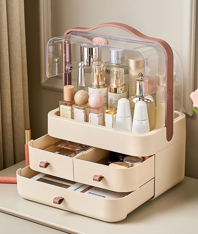 - 【Staubdicht und Wasserdicht】: Die durchsichtige Kosmetik-Aufbewahrungsbox wird mit einem dicken, hochwertigen Deckel geliefert, um Ihre Kosmetika vor Staub und Wasser zu schützen. Die Kosmetik-Aufbewahrungsbox hat Kategorien: 1 Hauptständer + 1