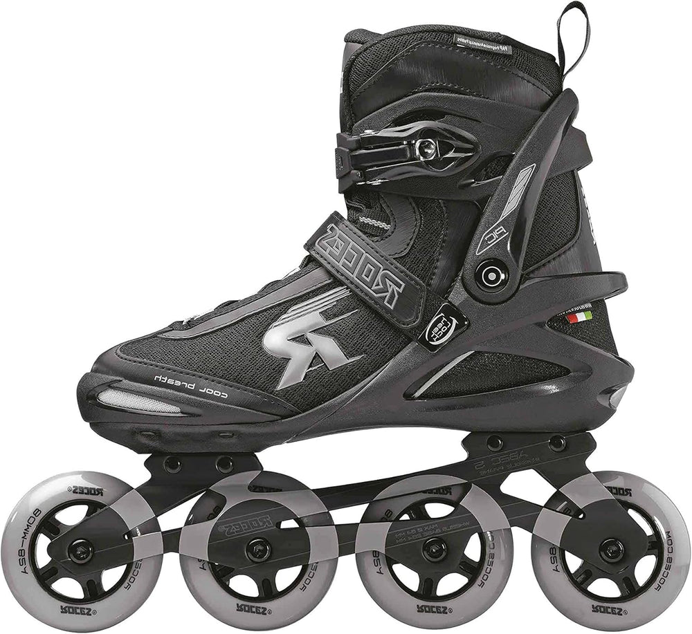 - Verschluss: Roces Schnellschnürsystem "B", eine Memory Ratschenschnalle am Schaft, zusätzlich ein Klettverschluss-Power-Strap