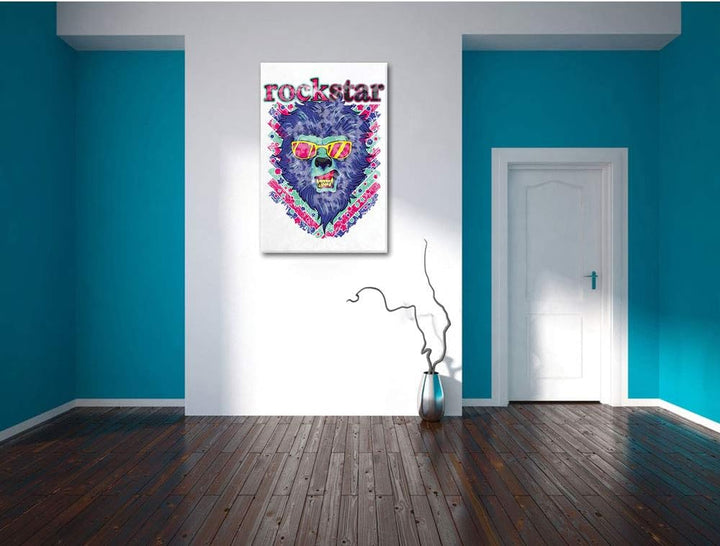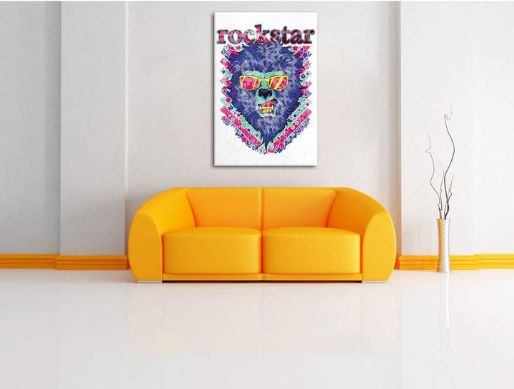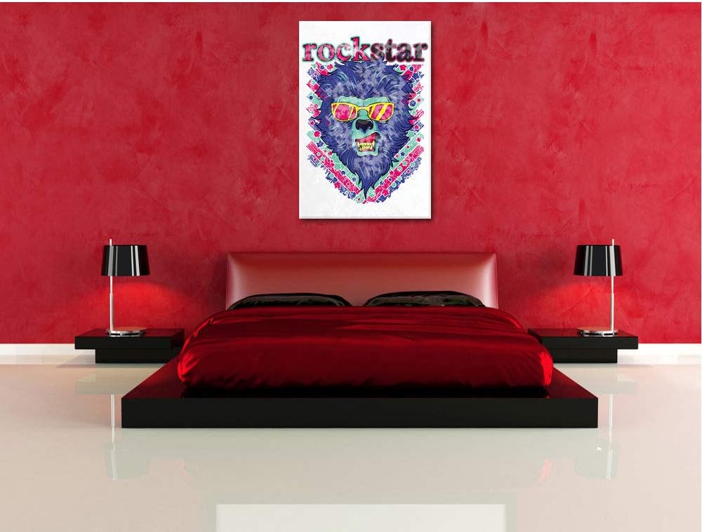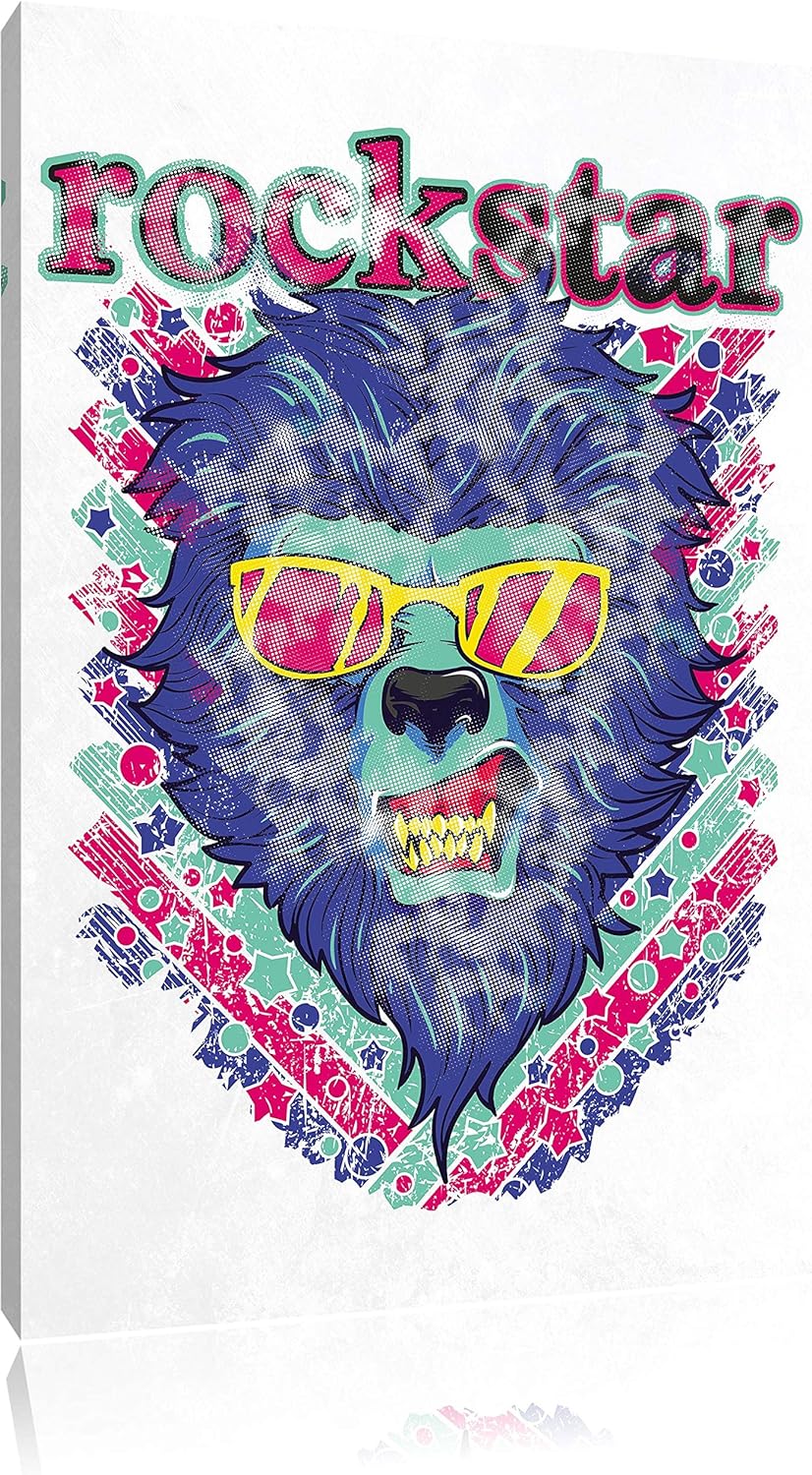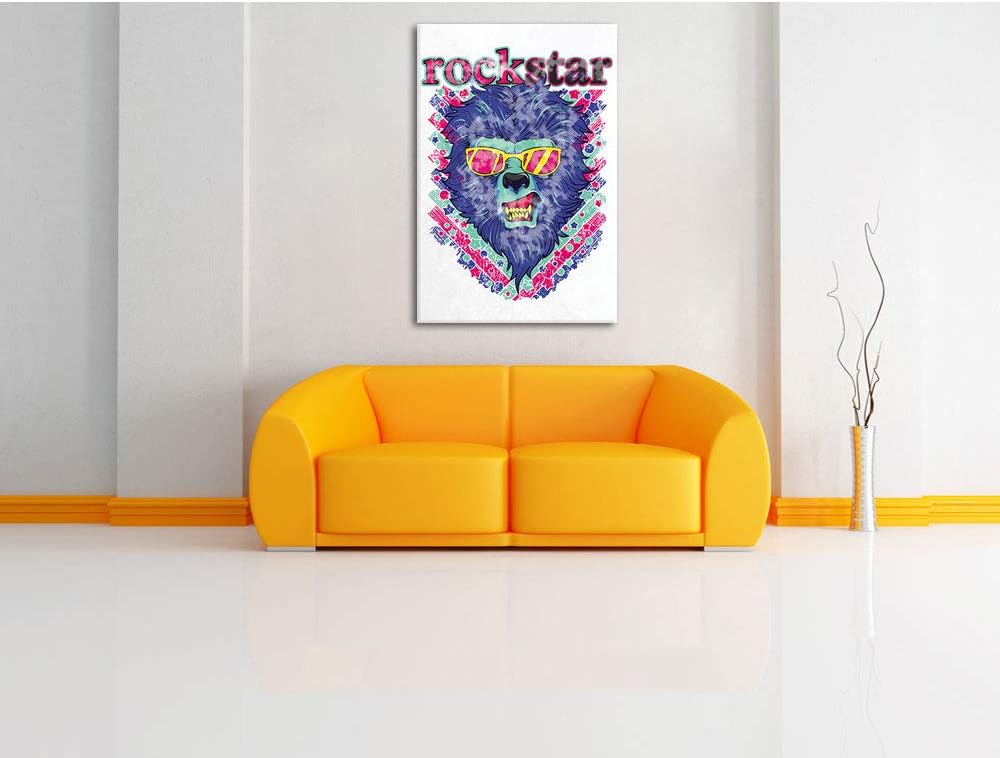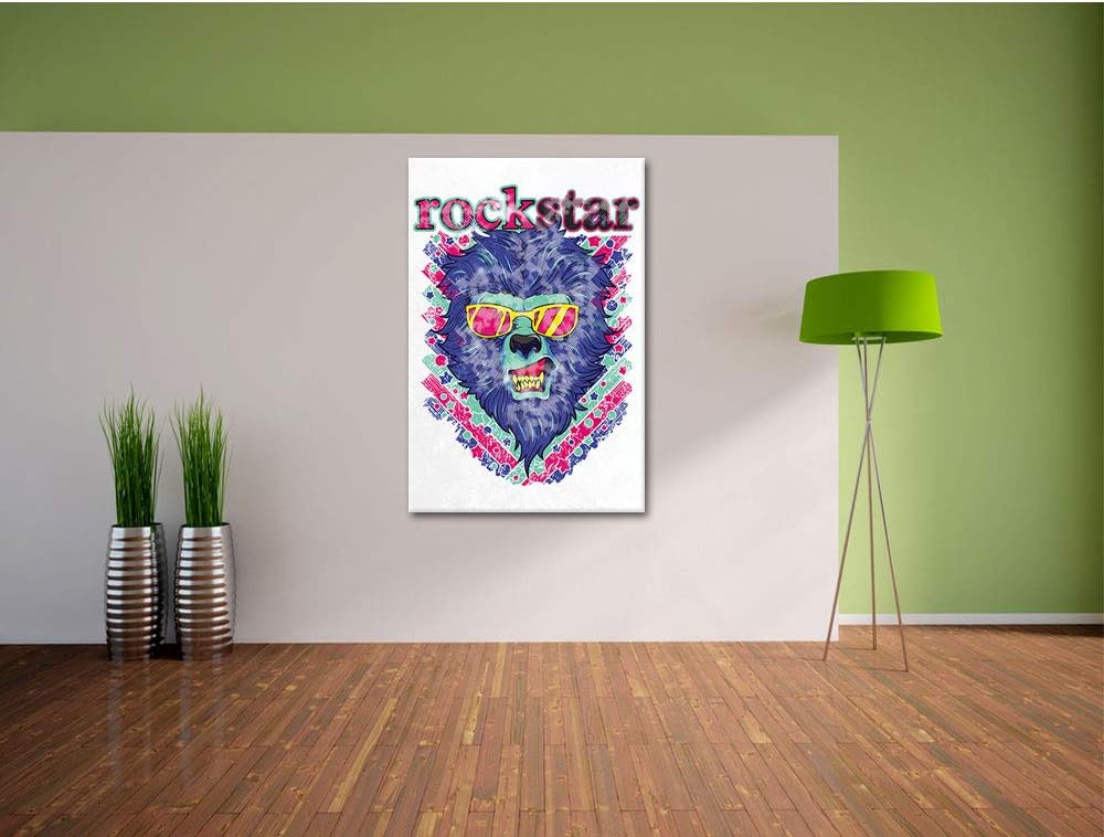 Rockstar-lion white Leinwandbild Bild auf Leinwand, XXL riesige Bilder fertig gerahmt mit Keilrahmen
