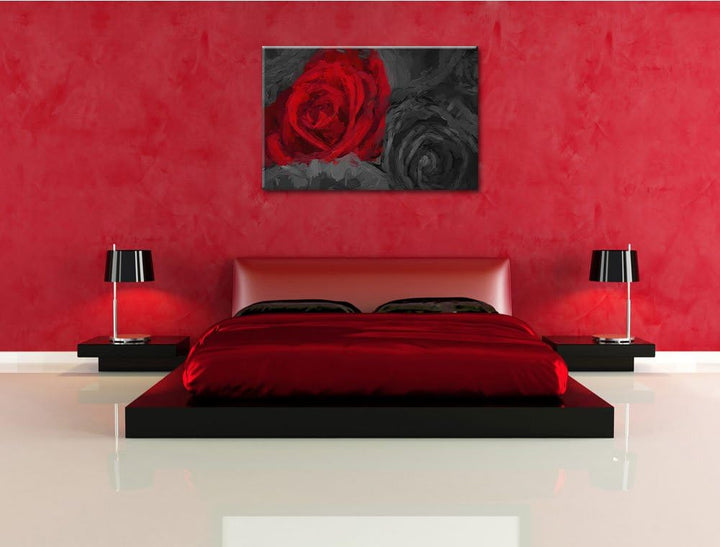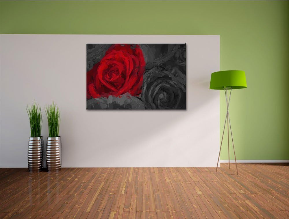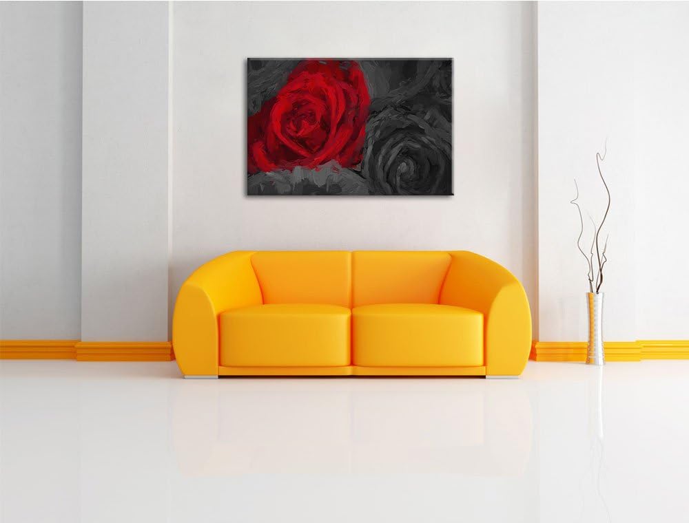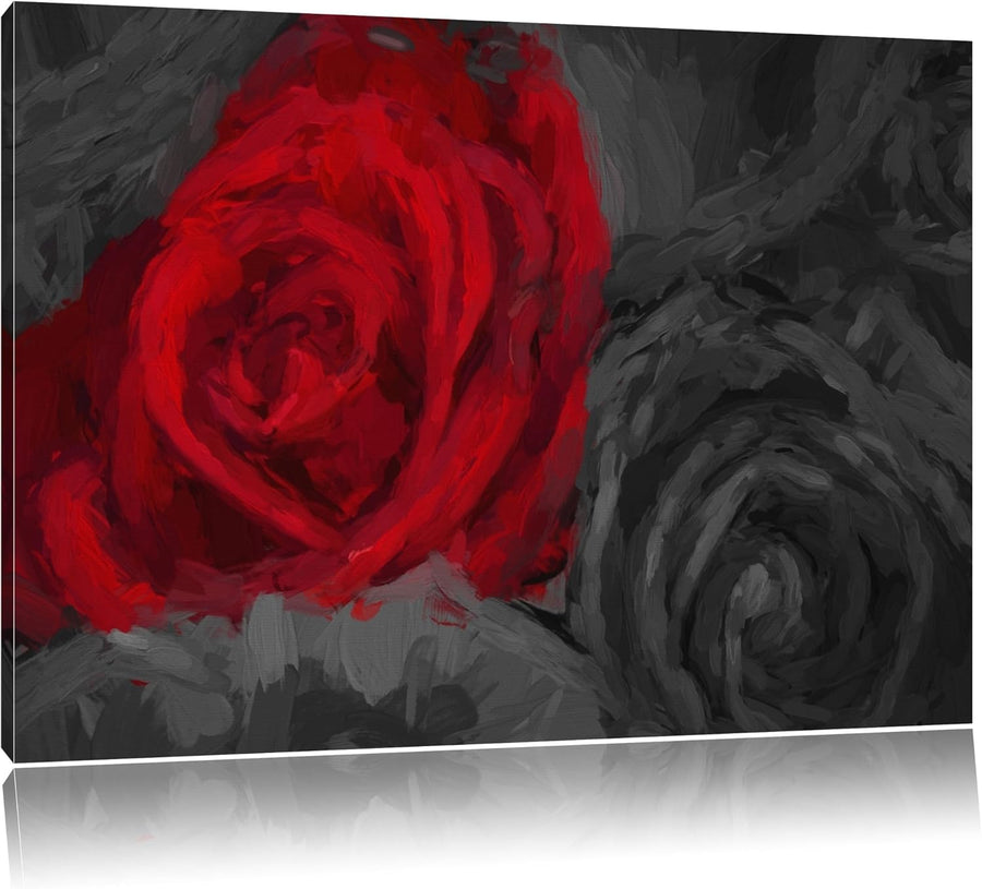 romantische rote Rosen schwarz/weiss Deluxe Format: 100x70 cm auf Leinwand, XXL riesige Bilder ferti