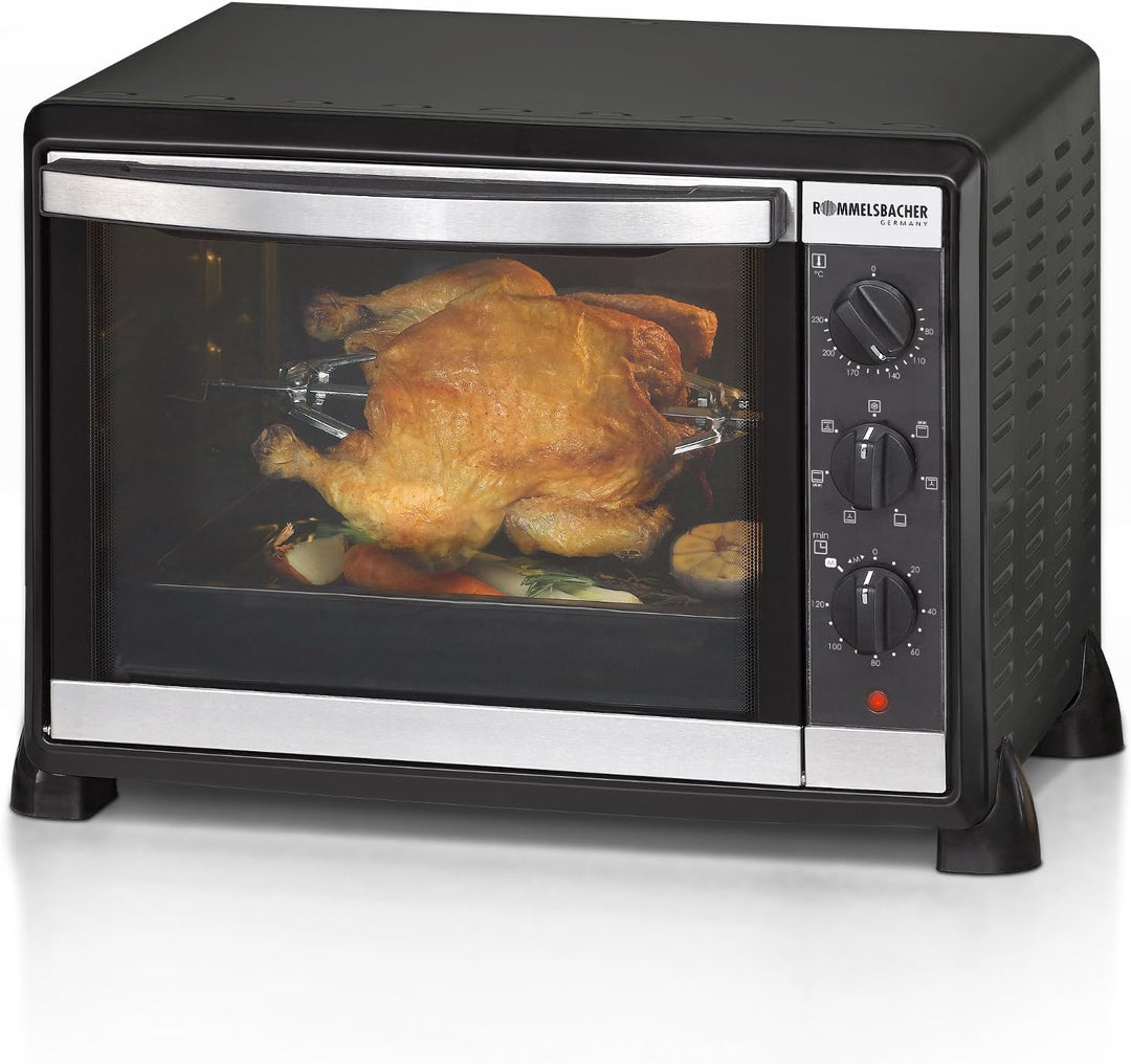 - mit motorischem Drehspiess für 1 Hähnchen, Rollbraten etc. , 120 Minuten Zeitschaltuhr mit Dauerstellung und Signalton, beleuchteter Backraum mit pflegeleichter Antihaftbeschichtung