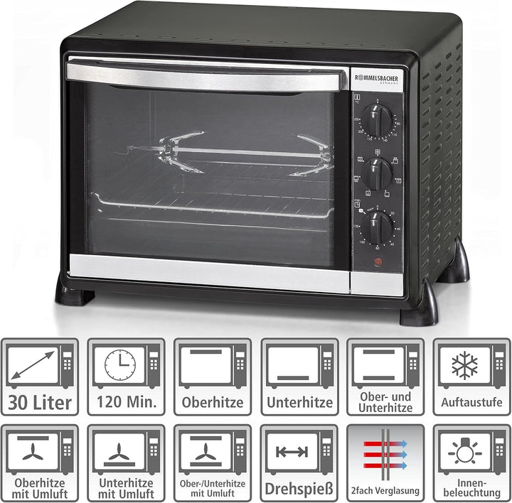 - grosses Volumen: 30 Liter, für Backformen bis 29 cm Durchmesser, 4 Heizelemente aus Edelstahl für eine kurze Aufheizzeit