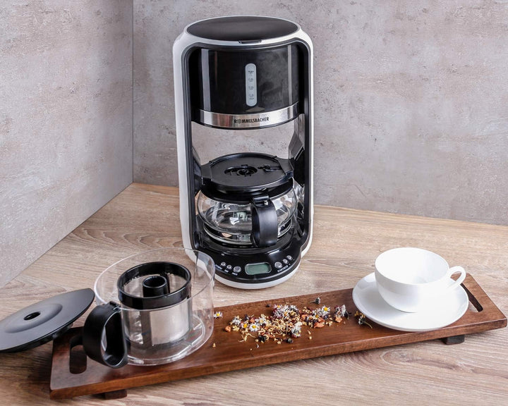 - Ziehzeit bis 10 Minuten einstellbar, 24 Stunden Startzeitvorwahl, 30 Minuten Warmhaltefunktion mit automatischer Abschaltung