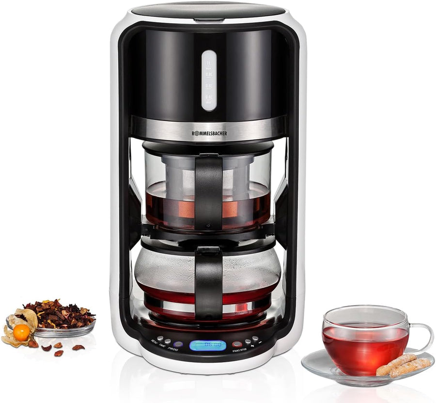 - elegantes Gehäuse aus erstklassigem, pflegeleichtem Kunststoff, vollautomatische Teezubereitung - für alle Teesorten, elektronische Steuerung über leichtgängige Tasten