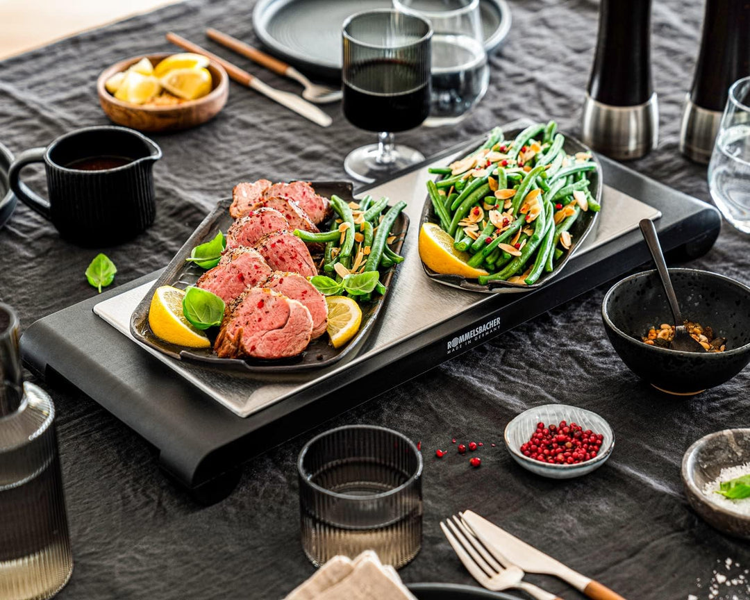 - langlebige, pflegeleichte Warmhaltefläche aus gebürstetem Edelstahl