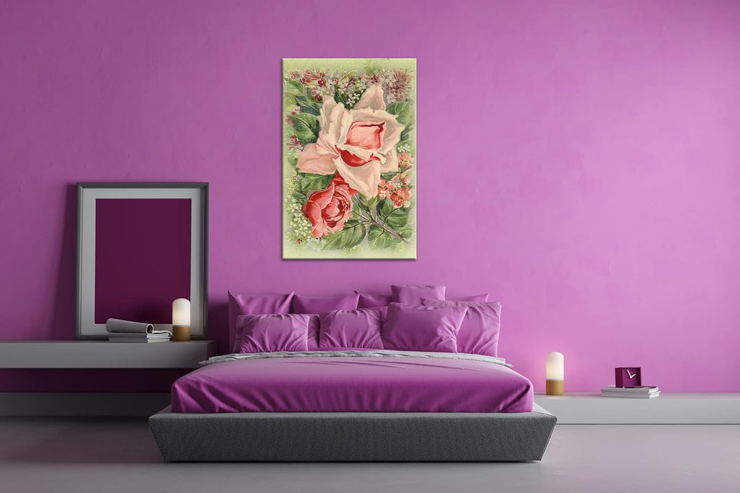 deyoli rosaroter Rosenstrauss Format: 80x60 als Leinwandbild, Motiv fertig gerahmt auf Echtholzrahme