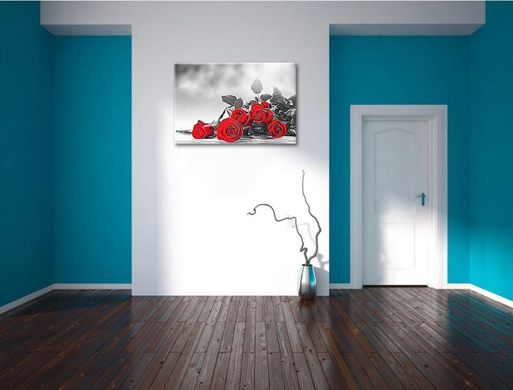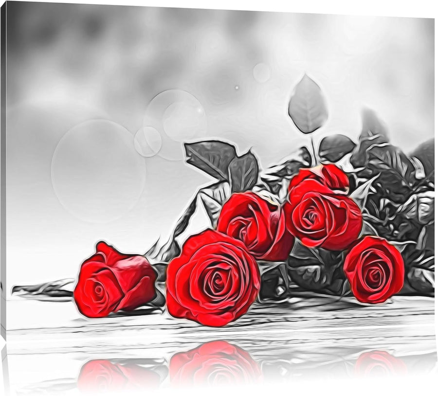 Rosenbouquet auf Holztisch Format: 100x70 auf Leinwand, XXL riesige Bilder fertig gerahmt mit Keilra