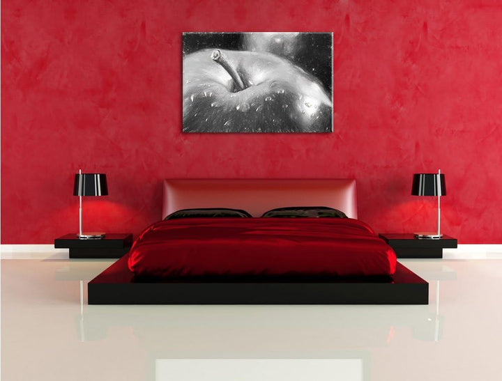 roter Apfel Kohle Effekt, Format: 100x70 auf Leinwand, XXL riesige Bilder fertig gerahmt mit Keilrah