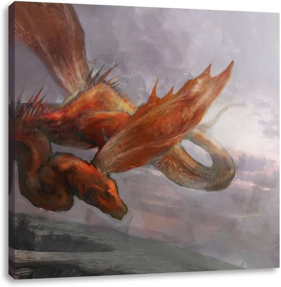 Roter Schlangendrache, Format: 70x70 auf Leinwand, XXL riesige Bilder fertig gerahmt mit Keilrahmen,