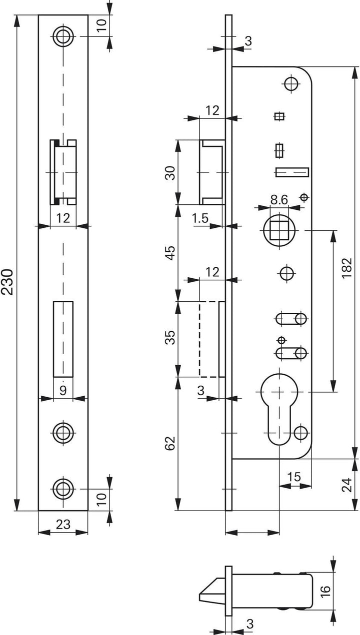 - Rohrrahmen-Schloss mit DM = 25mm | Kastentiefe: 40 mm
