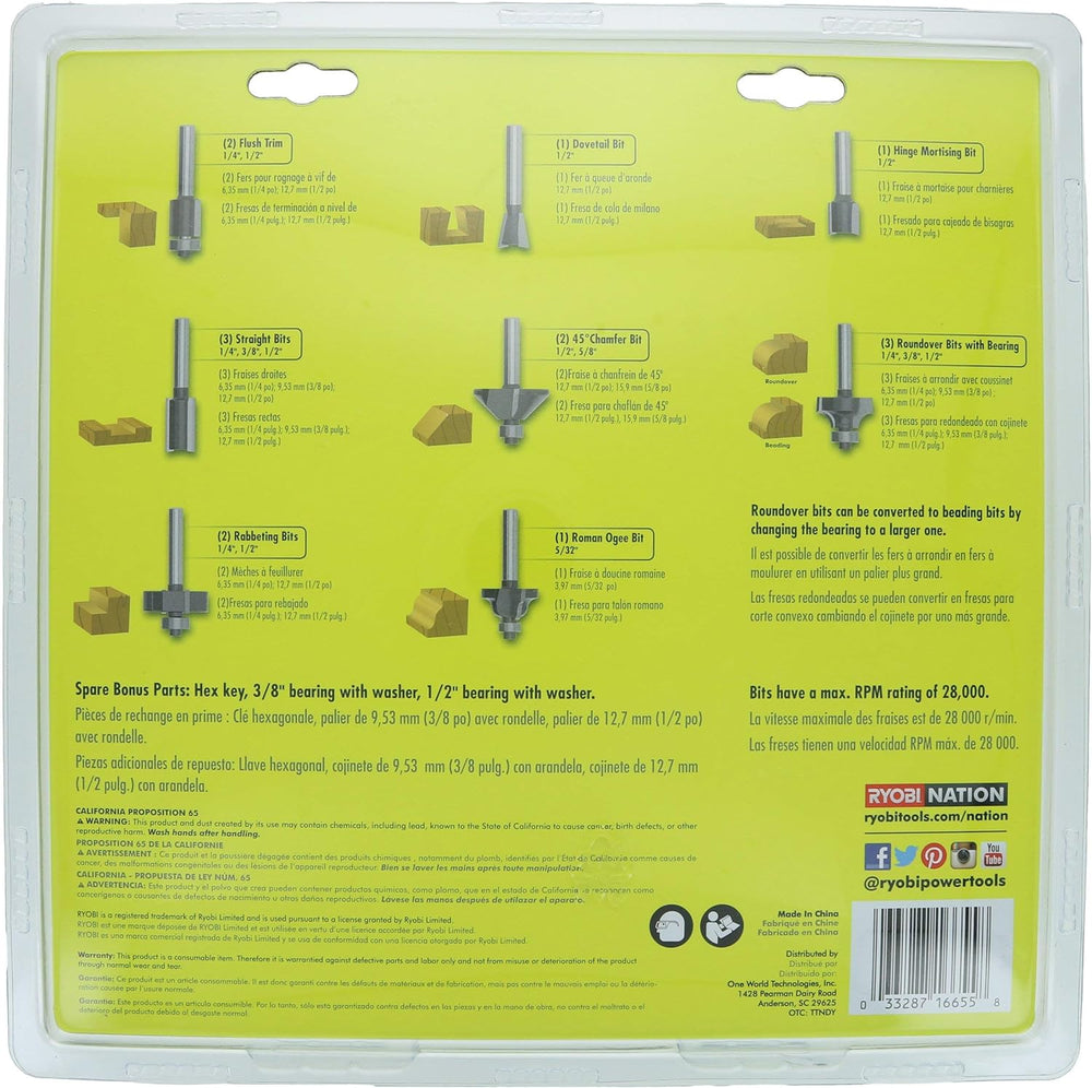 - Kit Beinhaltet: 2 x Trimmbits Spülen (1/4”, 1/2"), 1 x Schwalbenschwanz-Bit (1/2”), 1 x Falzbohrer (1/2”), 3 x gerades Stückchen (1/4”, 3/8”, 1/2"), 2 x 45 Mass Fase Bit (1/2”, 5/8”), 3 x Roundover-Bit mit Lager (1/4”, 3/8”, 1/2"), 2 x Rabbit-Bits (1/4”, 1/2"), 1 x Roman Ogee Gebiss (5/32”)