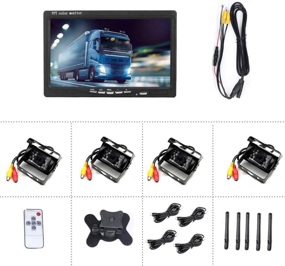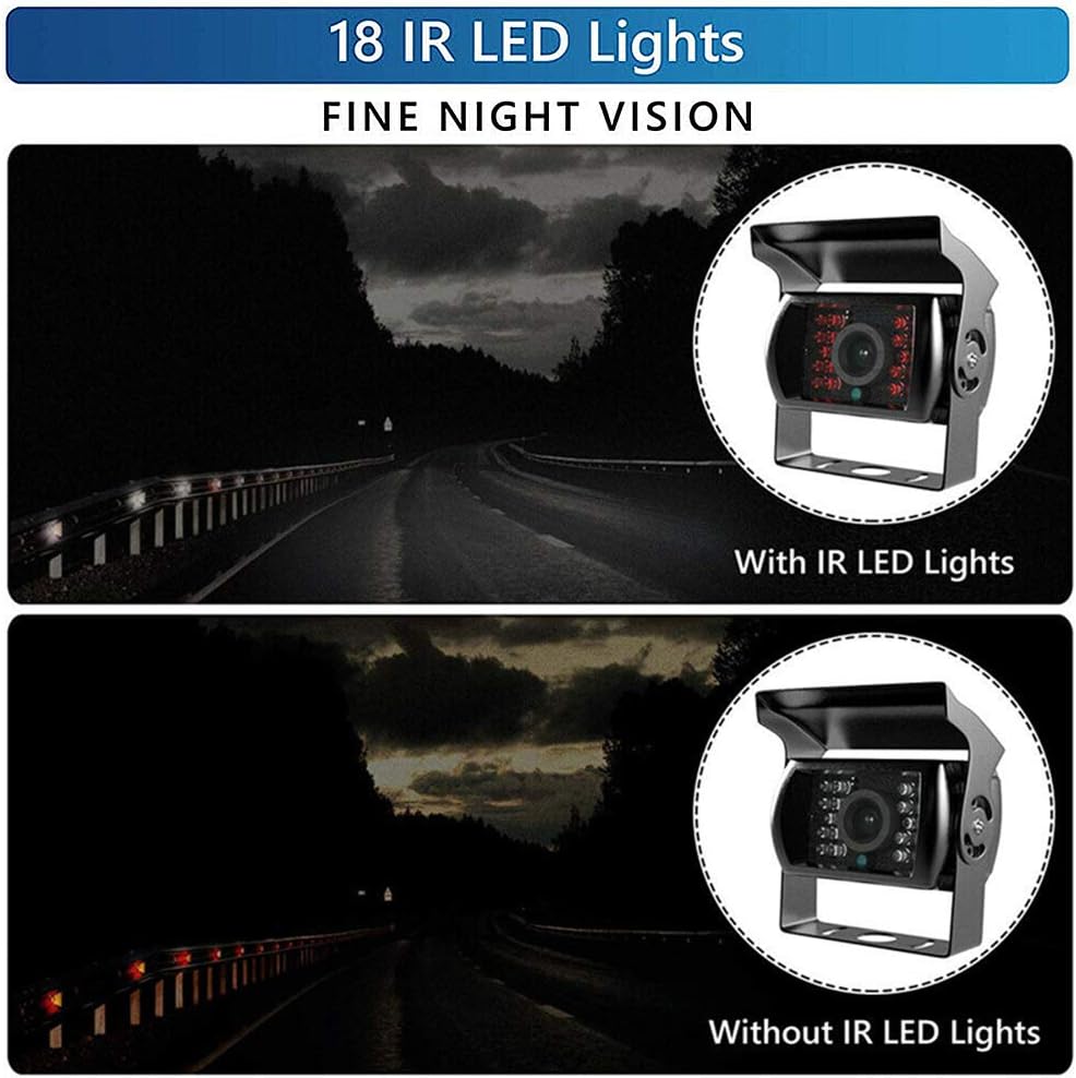 • Zwei drahtlose Ir-Nachtsicht-Rückfahrkameras mit wasserdichter Rückfahrkamera - Wasserfestes Kameraobjektiv mit 18 einzelnen Infrarot-LEDs. Effektive Reichweite bis zu 15 m.Externe Geräte wasserdicht IP67 x. Stromversorgung 12/24 VDC; ideal für Wohnmobile, LKW und Anhänger; Hartmetall, kann dauern länger ohne Erwärmung, damit arbeiten Vollzeit.