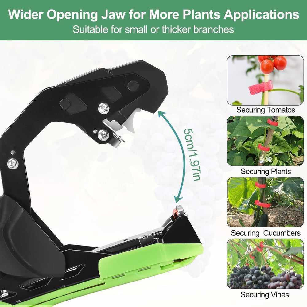 - 🏠 Breitere Backe und geringes Gewicht: Dieses verbesserte pflanzenbindemaschine verfügt über eine grössere 50-mm-Öffnungsbacke. Daher ist es auch bei dickeren Ästen vielseitig einsetzbar. Leichter als alte Pflanzen-Taping-Maschinen (nur 0,92