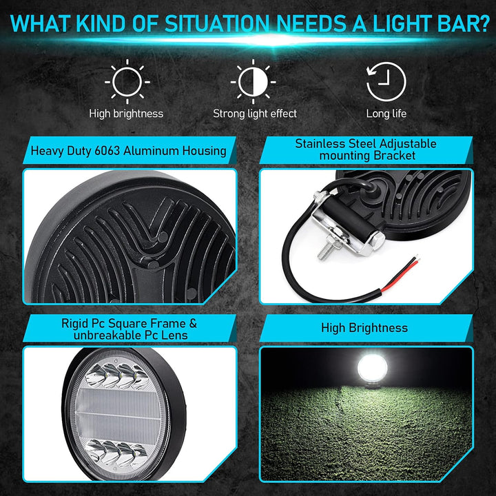 • FOCUSED SPOT BEAM - Verbesserte PC-Objektivoberfläche mit hoher Lichtdurchlässigkeit und hervorragender Sichtbarkeit. Spot Beam LED Pods Licht mit hochwertigem Reflektor für maximale Lichtprojektionsrate. Die perfekte Kombination aus Spotlicht bietet