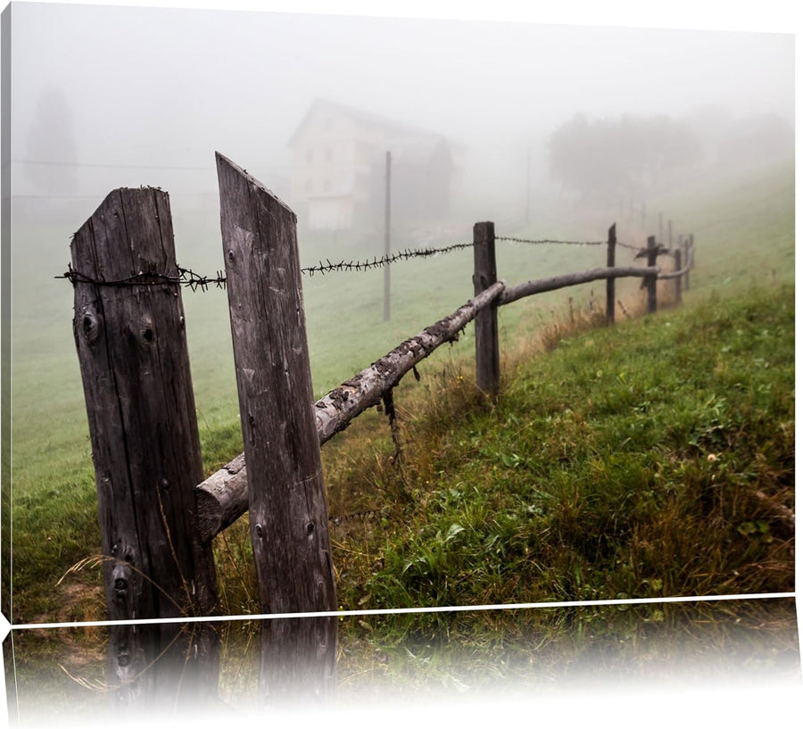 Rustikaler Holzzaun auf Wiese Format: 100x70 auf Leinwand, XXL riesige Bilder fertig gerahmt mit Kei