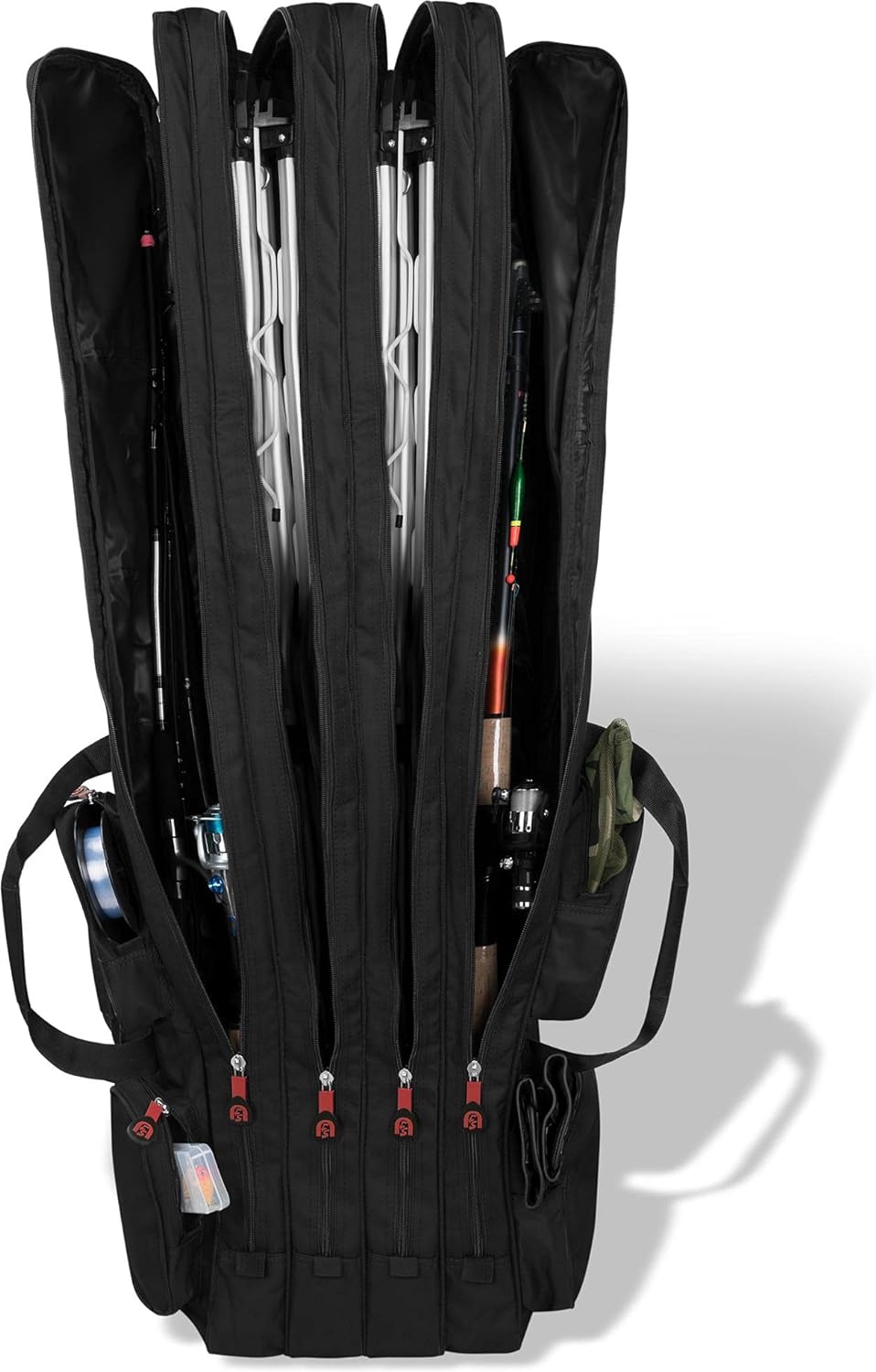 - Gut gepolsterter Rückentragegurte und stabile Doppelreissverschlüsse mit gummierten nfs Zippern und integrierte Rutenbänder mit Klettverschluss schützen Ihre Ruten bei Transport und Aufbewahrung - Zusätzlicher mit der länglichen Aussentasche für