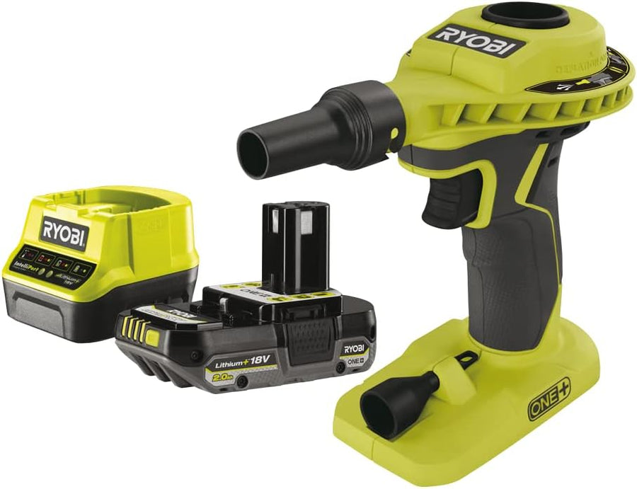 - Lieferumfang: Akku-Luftpumpe R18VI-0, inkl. 2 Ventilaufsätze, 1x 2,0 Ah Akku und Ladegerät im Karton
