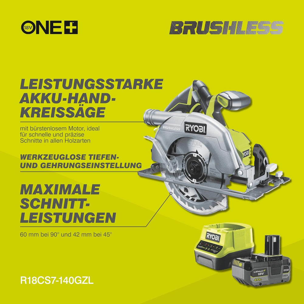 - Lieferumfang: Akku-Handkreissäge R18CS7-140GZL, inkl. 1 x 4,0 Ah Akku & Ladegerät