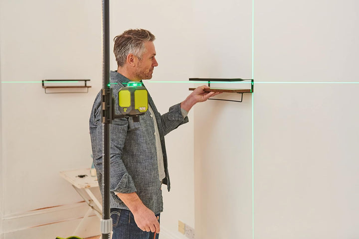 - Der 360° Grünlinien-Laser ermöglicht das Arbeiten in grossen Räumen und projiziert eine horizontale Laserlinie über alle Wände, Ideal zum Aufhängen von Regalen oder Bildern an verschiedenen Wänden auf gleicher Höhe