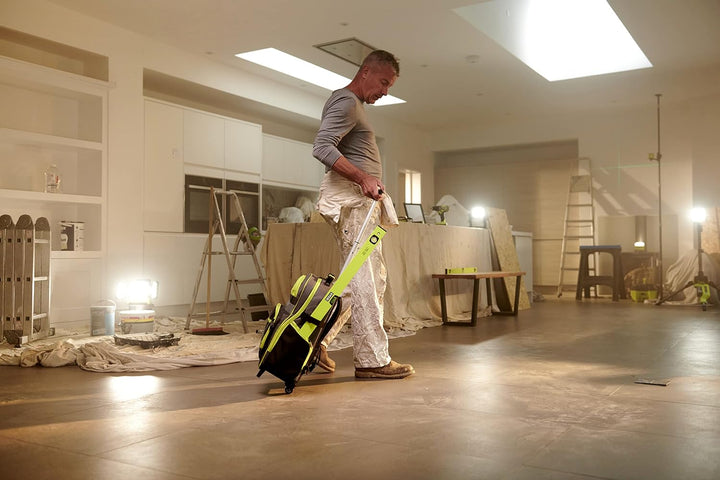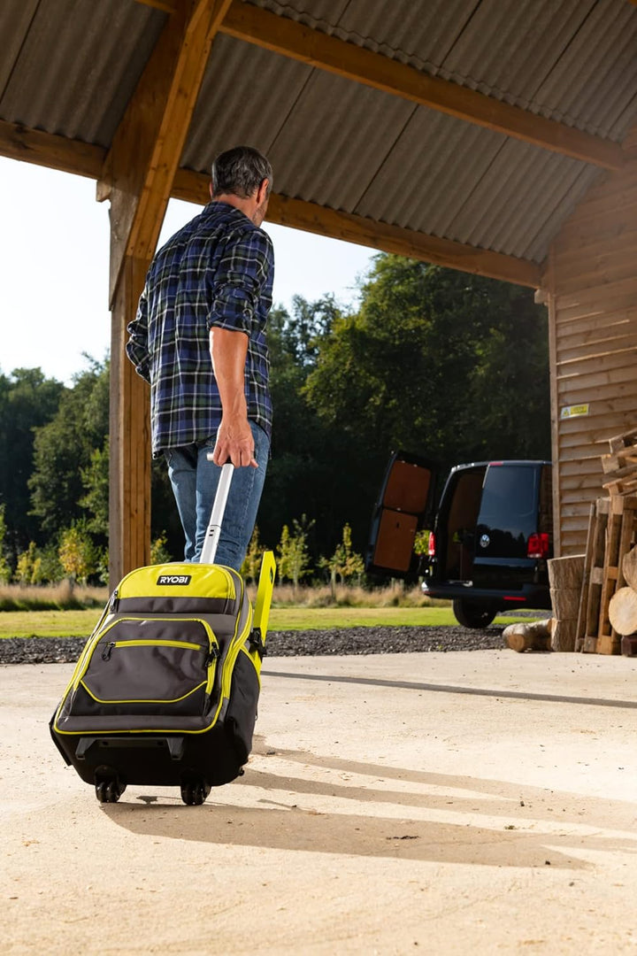 - RYOBI Werkzeug-Rucksack mit teleskopierbarem Griff und Rollen, ideal einsetzbar im nassen oder staubigen Arbeitsbereich wie z.B. auf der Baustelle