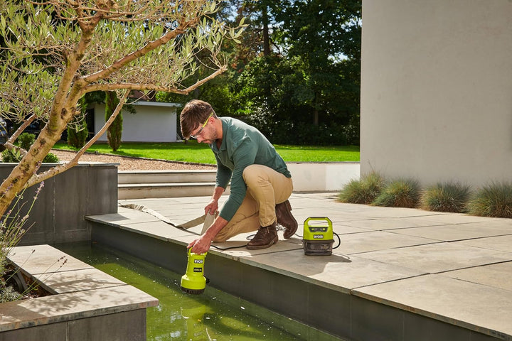 - Die automatische Abschaltfunktion von Ryobi bedeutet, dass das Gerät 30 Sekunden aufhört, Wasser zu pumpen. Der Wasserstand sinkt unter die Mindest-Saugstufe. Dies verhindert Schäden an Ihrer Pumpe