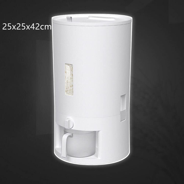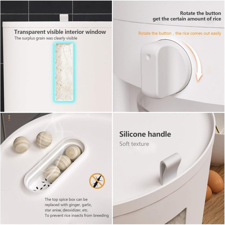 - 【Rotating Design】Passen Sie die Grainmenge bequem an und messen Sie sie. Unser Lebensmittellager kann bis zu 10kg Reis und Getreide Ihrer Wahl halten.